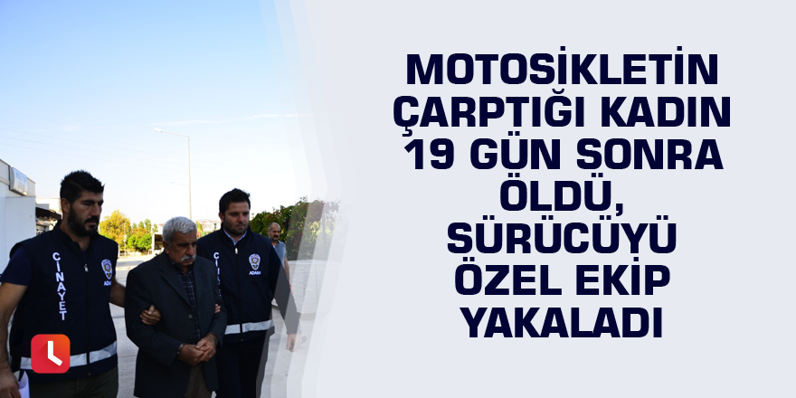 Adana'da gece motosikletin çarpması sonucu yaralanan ve kaldırıldığı hastanede 19 gün sonra hayatını kaybeden kadına çarpan şahıs kurulan özel ekip tarafından yakalandı.