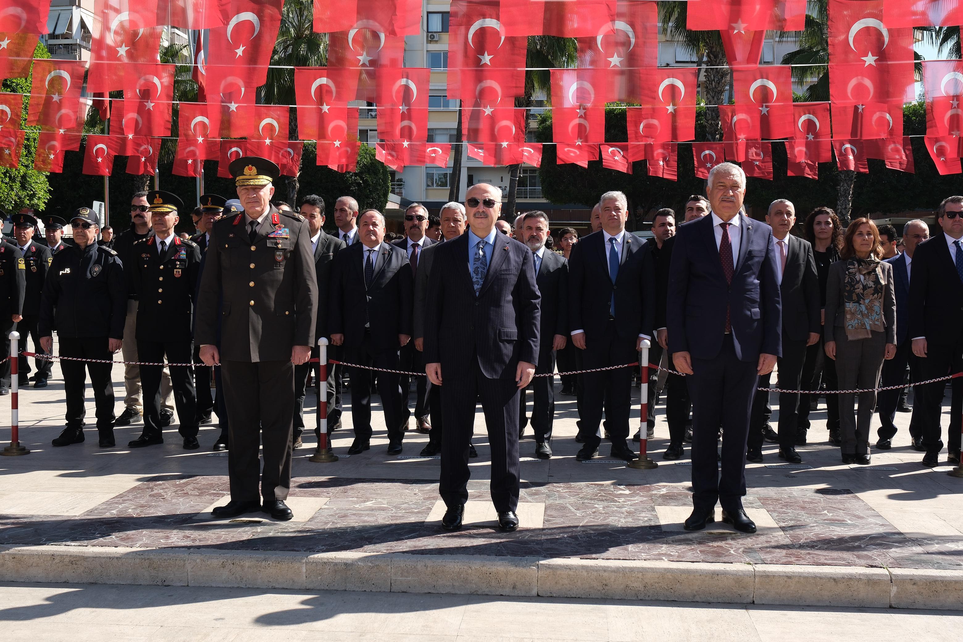 Atatürk Parkı'ndaki Atatürk Anıtı önünde düzenlenen çelenk koyma törenine; Adana Valisi Yavuz Selim Köşger, Adana Büyükşehir Belediye Başkanı Zeydan Karalar, 6. Kolordu ve Garnizon Komutan Yardımcısı Tuğgeneral Ozan Nas ile kentin sivil ve asker erkanı, gaziler, öğrenciler katıldı.