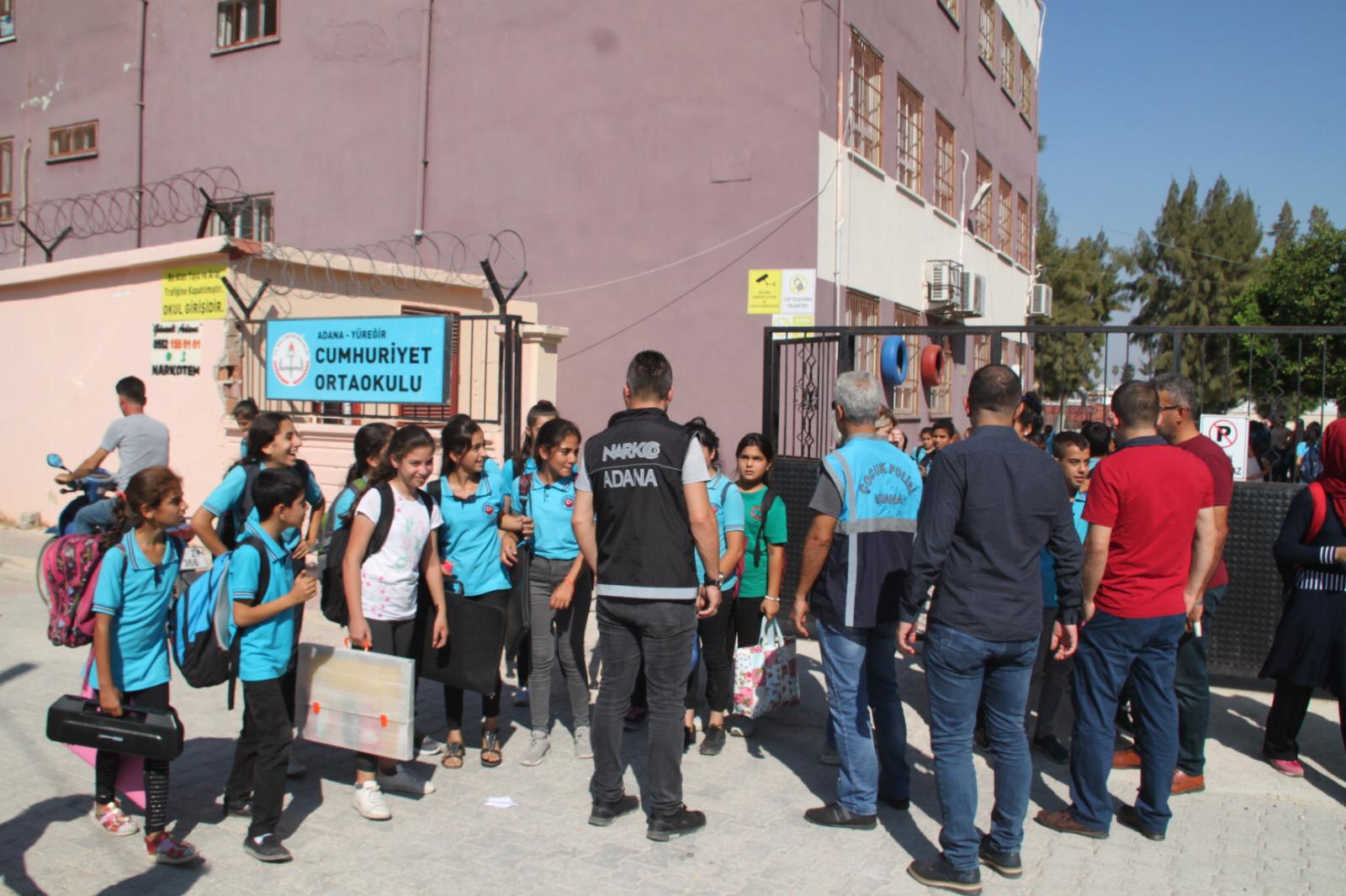 Adana Emniyet Müdürlüğü Çocuk Şube Müdürlüğü, narkotik ve bölge devriye ekipleriyle okul önlerinde ve çevrelerinde denetimlerde bulundu.
