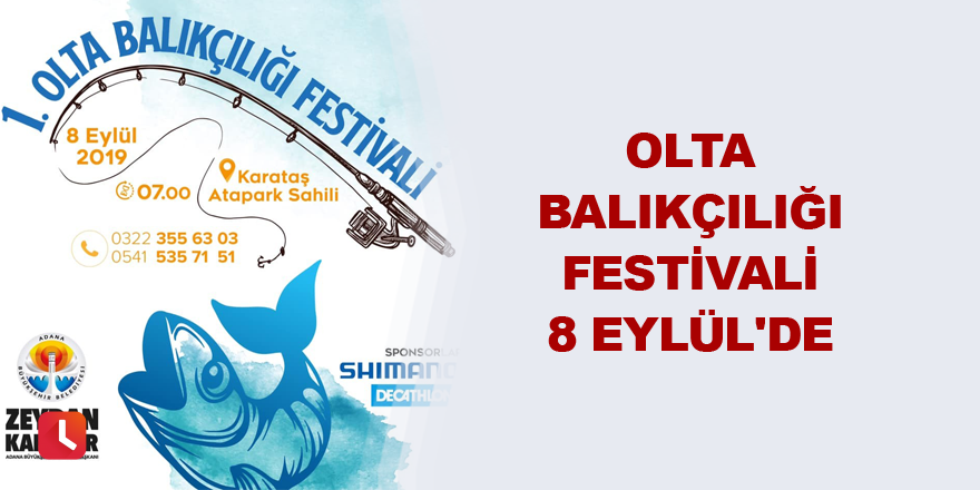 Adana Büyükşehir Belediyesi’ne bağlı Denizcilik ve İç Su Hizmetler Şube Müdürlüğü, Karataş ilçesi Atapark Sahili’nde olta balıkçılığına teşvik için 8 Eylül Pazar günü ’1. Olta Balıkçılığı Festivali’ düzenleyecek.