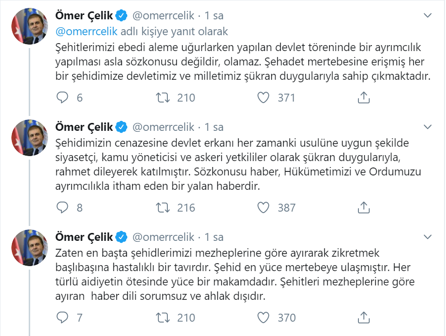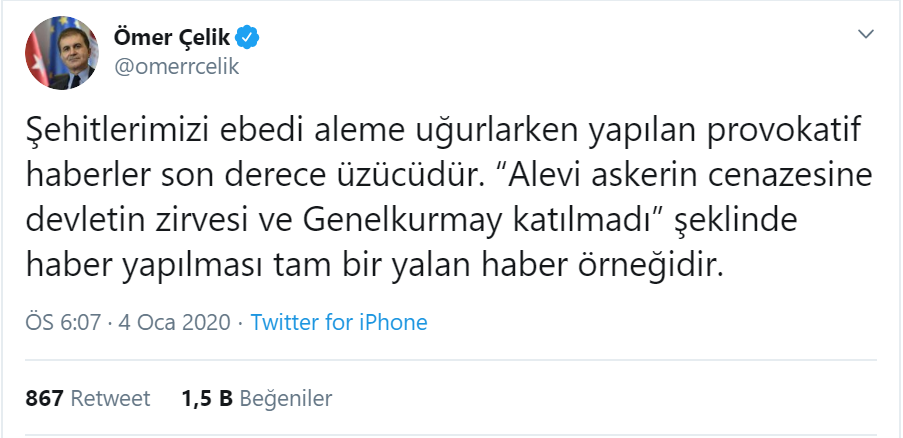 Bir grup basın organında yayınlanan "Alevi şehidin cenazesine devlet zirvesinden katılan olmadı" haberlerine Çelik ateş püskürdü