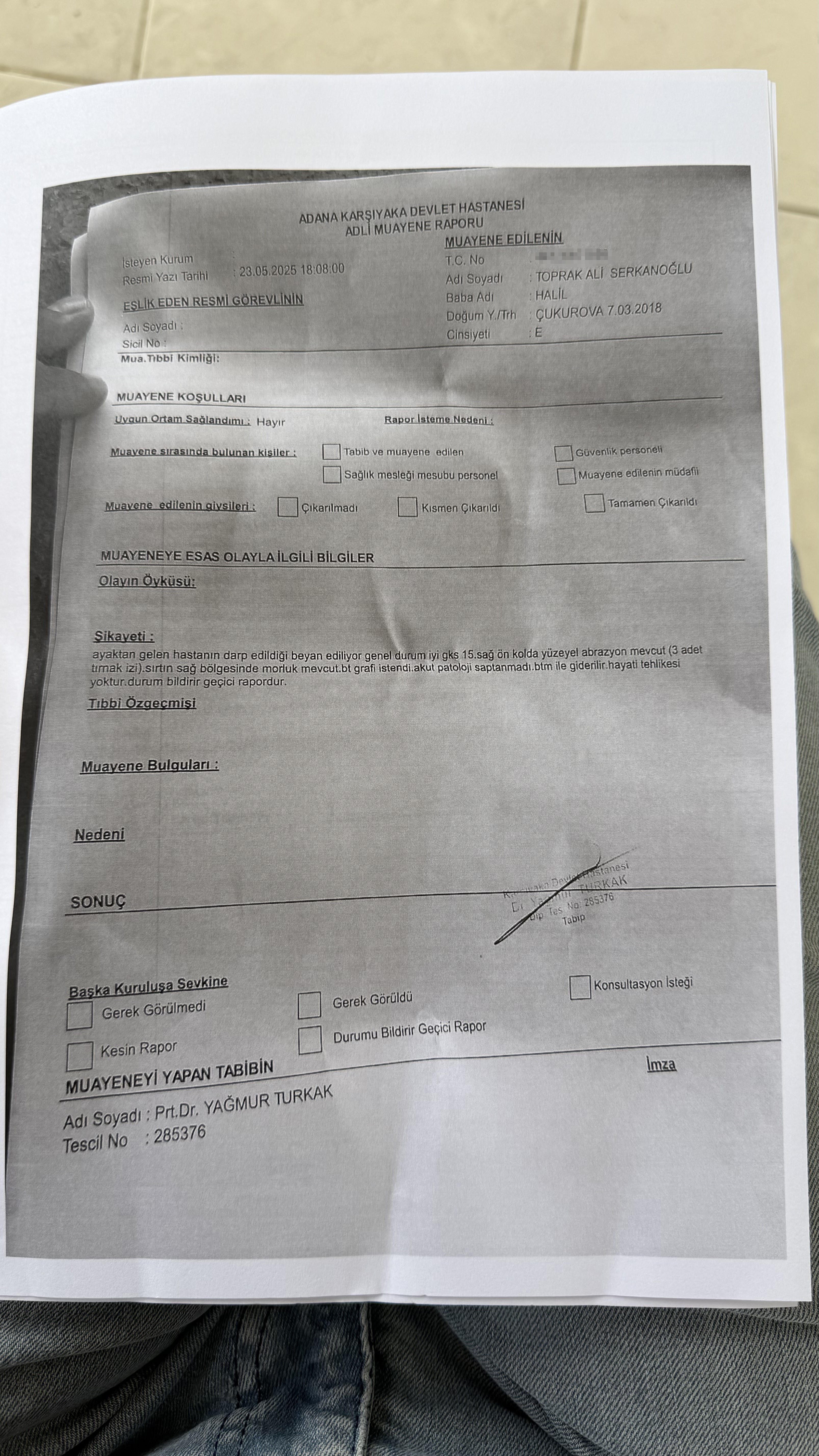 Adana'da bir özel eğitim merkezinde otizmli 7 yaşındaki çocuğun öğretmeni tarafından darbedildiği iddiası üzerine aile, suç duyurusunda bulundu. Olayla ilgili soruşturma başlatıldı.