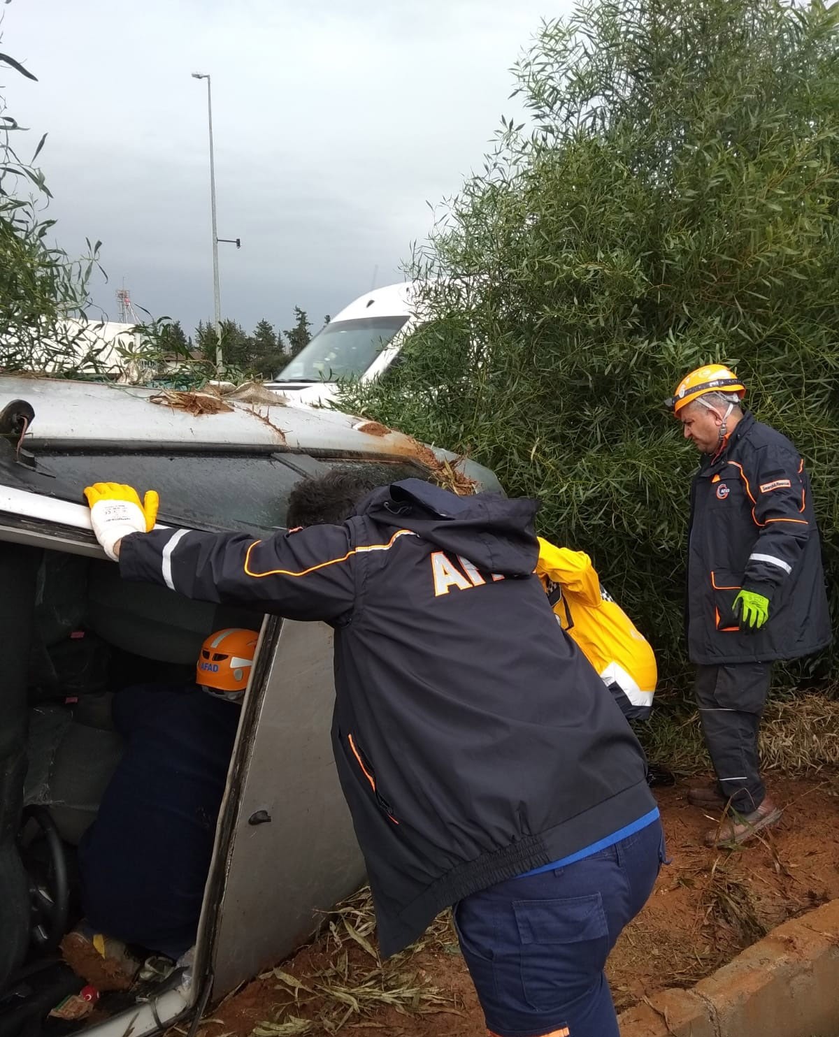 Adana'da refüje devrilen otomobilde sıkışan bir kişi AFAD ekipleri tarafından kurtarıldı.