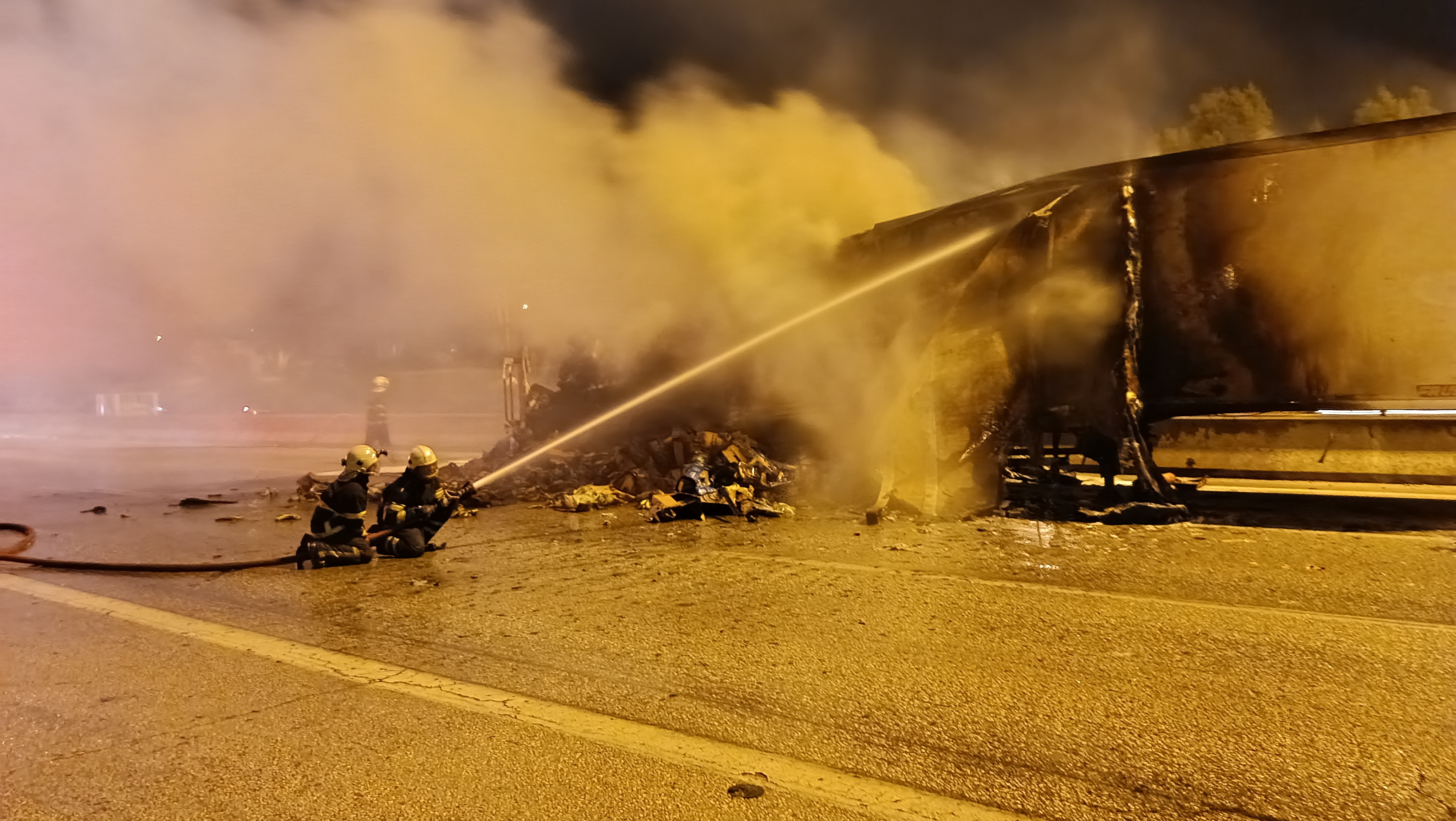 Kısa sürede alev topuna dönen cip kullanılamaz hale geldi. Kazada tırın dorsesi de yanarken, olay yerine çağrılan itfaiye ekipleri yangına müdahale ederek alevleri kontrol altına aldı.