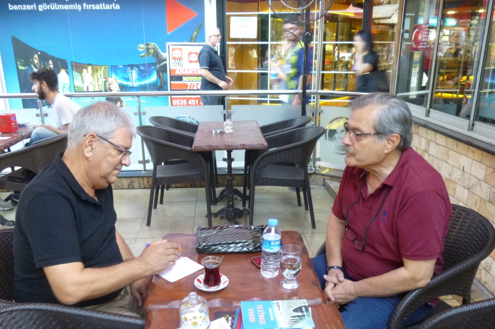 İkimizin de yaşı 60'ı geçmiş olmasına rağmen sanki yıllarımız birlikte geçmişçesine sıcak bir sohbet oldu. Aynı kahvelerin önünden geçmiş, aynı kütüphanenin kapısında ayakkabı eskitmiş, aynı tozlu simit tatlısı yiyip, aynı kerrüseye (Fayton) gizli binerken arabacıdan kırbaç yemiş, aynı havayı soluyarak büyümüş çocuklar gibi sohbet ettik.