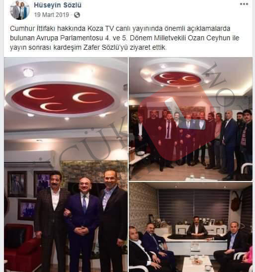 Ceyhun'un büyükelçi olması sonrasında tartışmalar sürerken, konu Adana yerelinde de yeni bir boyut kazandı. 19 Mart 2019'da Adana Koza TV'de programa katılan Ozan Ceyhun'un program sonrasında Adana Büyükşehir Belediyesi eski Başkanı Hüseyin Sözlü ile birlikte kardeşi Zafer Sözlü'yü ziyaret ettiği fotoğraflar sosyal medyada yeniden dolaşıma girdi.