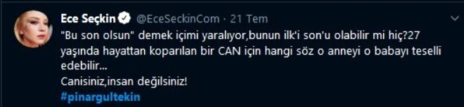 Pınar'ın yürek yakan ölümüne ünlü isimler böyle isyan etti