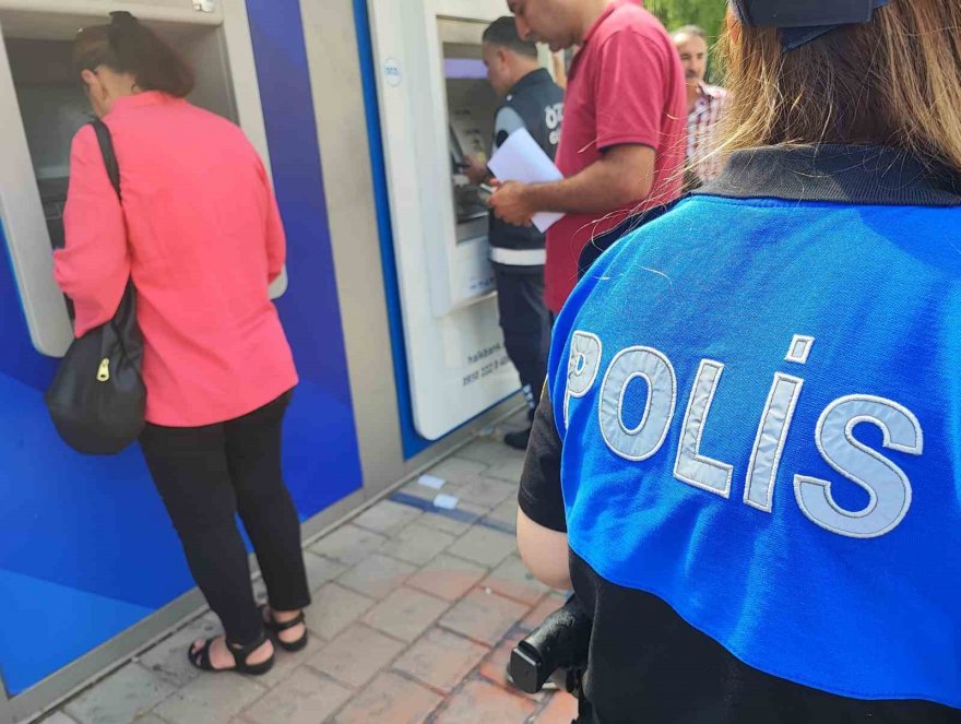 Adana polisi vatandaşın parasını dolandırıcılara ve hırsızlara kaptırmaması için onları ATM önünde para çekerken uyarıp bilgilendirme yaptı.