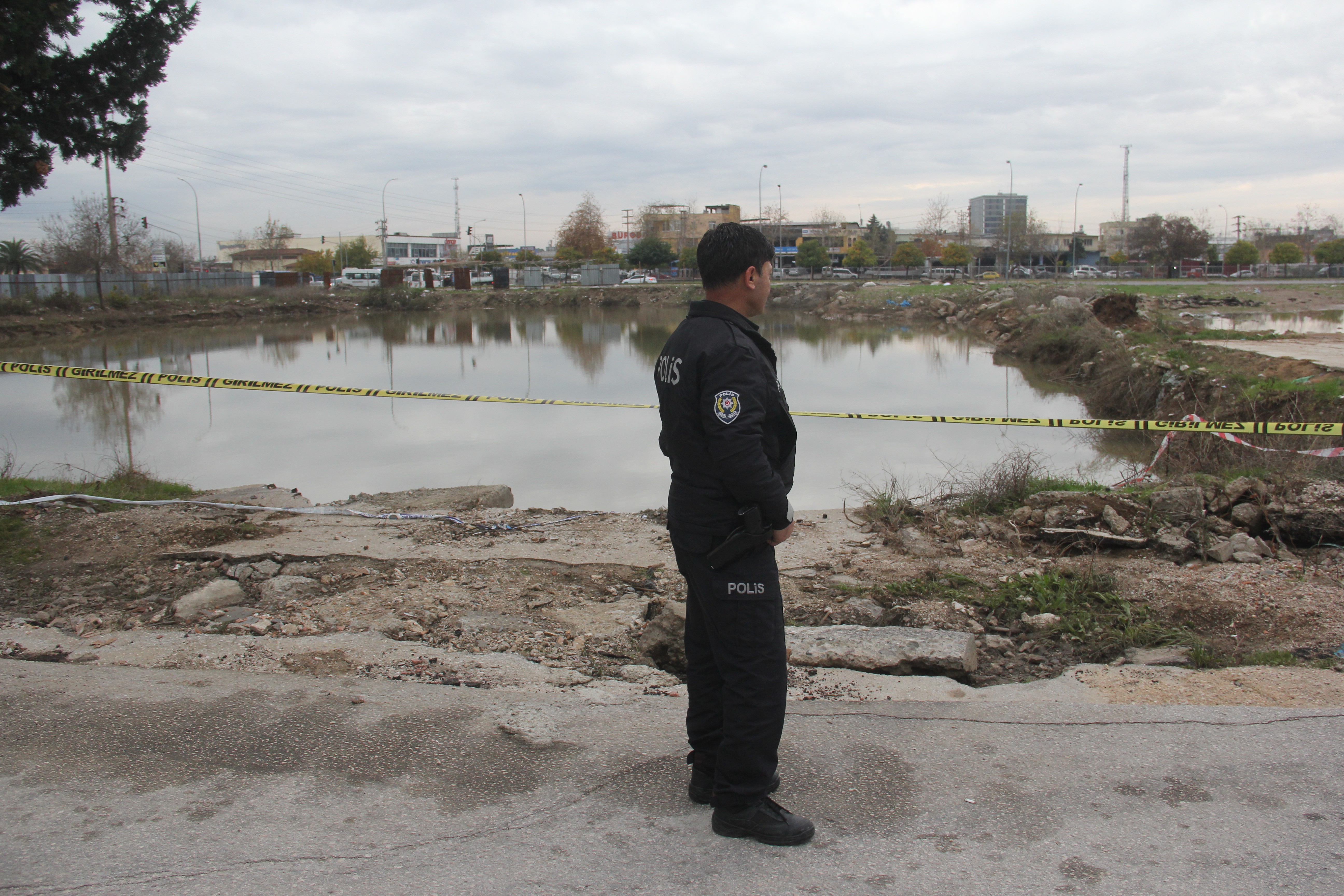 Adana'da yaklaşık 10 gündür devam eden yağmur nedeniyle bir okulun yanındaki inşaat temelinde oluşan gölde çocukların düşerek boğulmaması için polis nöbet tuttu.