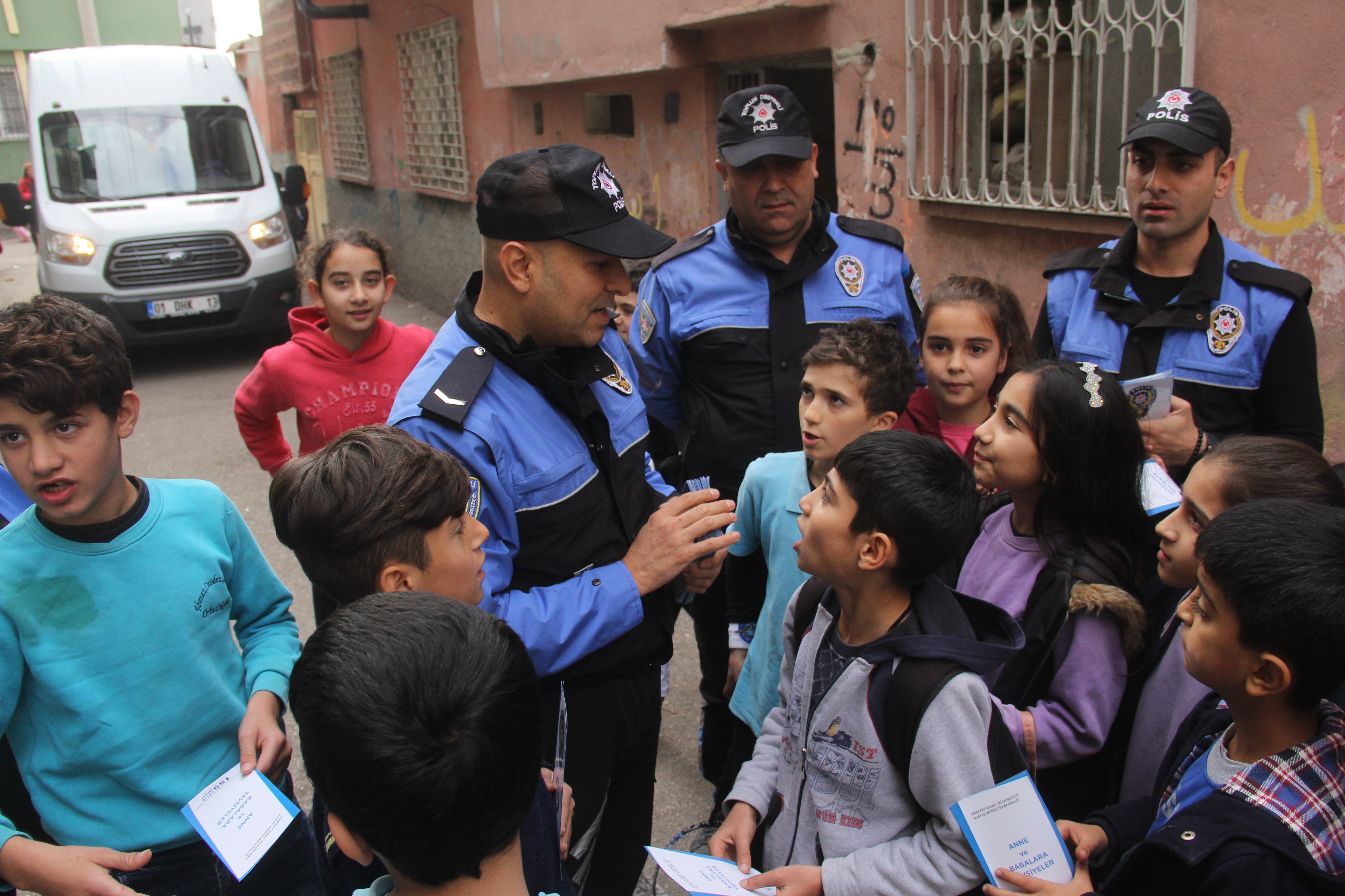 Adana'da 12 gün içeresinde 3 çocuğun evlerinin önünde oynarken araç altında kalarak can vermesinden sonra Toplum Destekli Polislik Şube Müdürlüğü sokak sokak gezerek, hem çocukları hem anneleri uyardı.