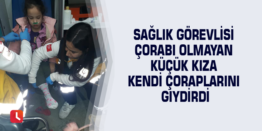 Sağlık görevlisi ayağında çorapları olmayan kız çocuğunu ambulansa alıp önce müdahale etti, ardından kendi çoraplarını çıkararak küçük kıza giydirdi.