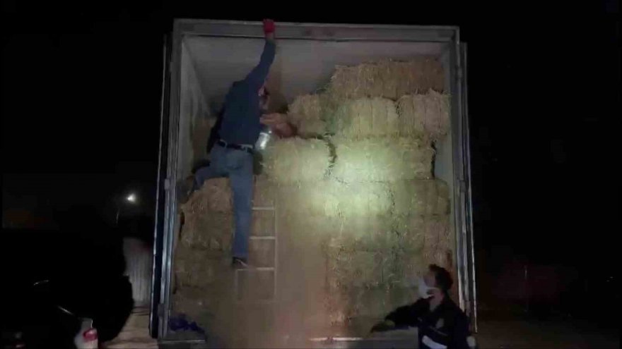 Adana Emniyet Müdürlüğü Narkotik Suçlarla Mücadele Şube Müdürlüğü ekipleri şüphelendiği bir tırı durdurdu. Saman balyası yüklü tırda narkotik dedektör köpeği "Uzi" arama yaptı. Uzi'nin saman balyalarına tepki vermesinin ardından polisler balyaları tek tek indirdi.