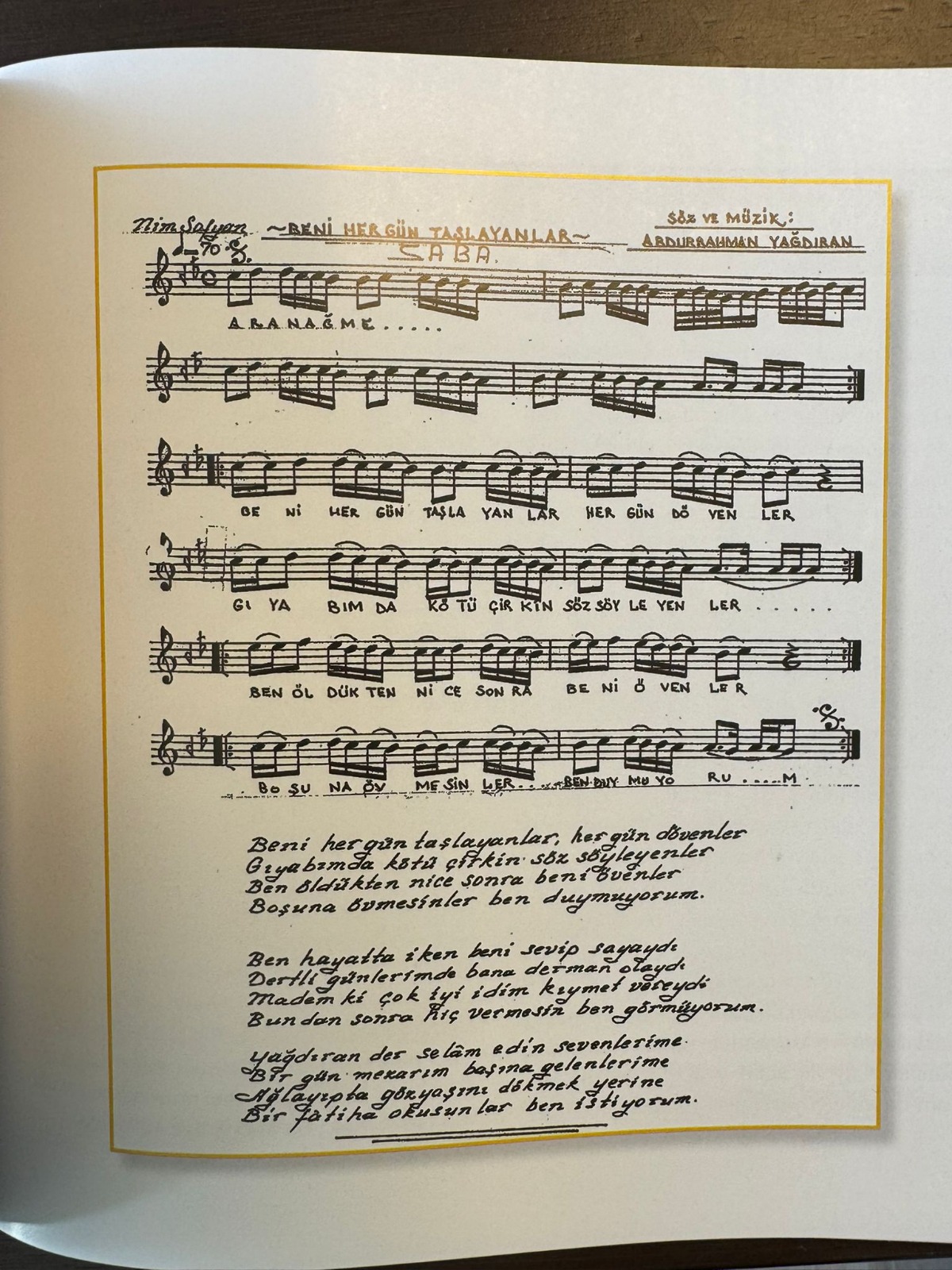 Yağdıran’ın ilk bestesi olan, ‘Ateşli aşkımın sonu gelmeyecek mi Allahım?’ isimli saba makamındaki şarkısını ‘okuma yazma bile öğrenmeden’ 15 yaşında yaptığını, şarkının bir süre prozodik hata nedeniyle TRT repertuvarına alınamamasını ve sonrasını detaylarıyla öğreniyoruz.