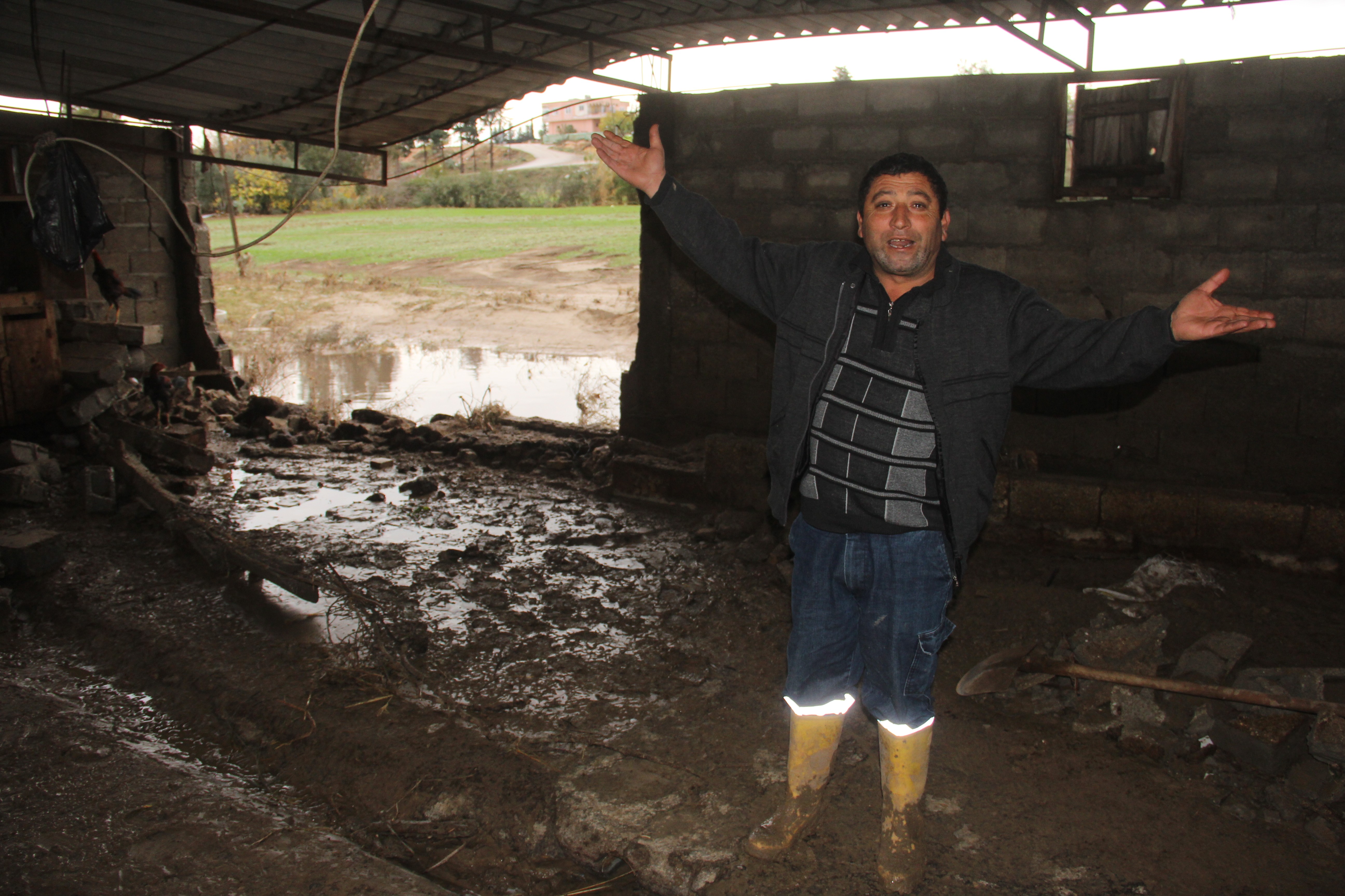 Perişan olduklarını söyleyen Ahmet Yılmaz, "Yağmur yağınca bir anda sel oluştu büyükbaş hayvanlarımı zor kurtardım. Ahırım zarar gördü.