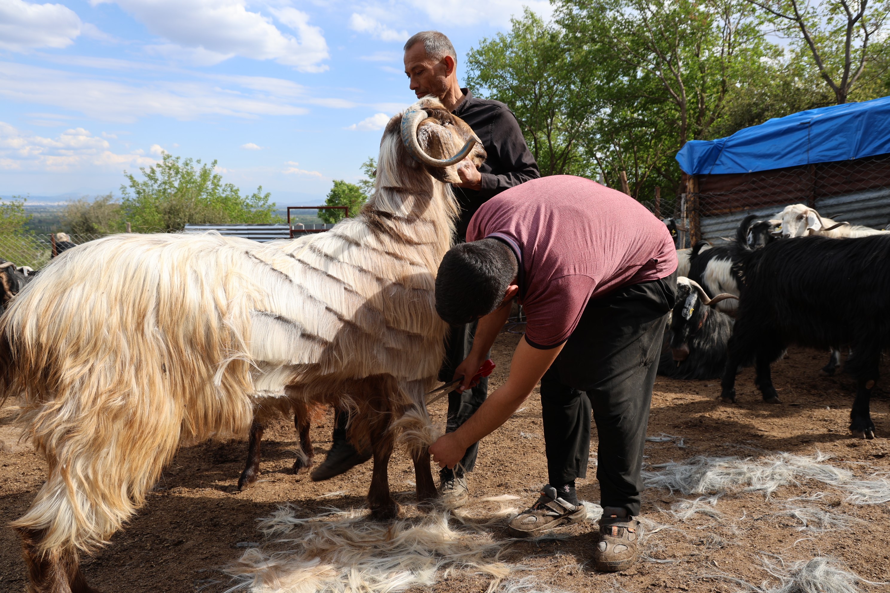 250 küçükbaş ile 50 büyükbaşı bulunan üretici Emrah Doğan, keçi ve koyunların baharın gelmesi ile birlikte bakımlarına başladıklarını belirterek, "Her yıl sıcak havalar başlamadan hayvanların serin ve sağlıklı kalabilmesi, Kurban Bayramı öncesi de bakımlı olması gerekir. Keçi ve koyunları damat gibi hem bahar hem Kurban Bayramı için hazırlıyoruz. Kırkımın zorluğu tutması zor. Hayvanlar alışkın olmaz ise bu daha da zor hale geliyor" dedi.