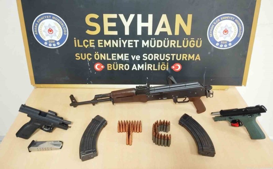 Adana'da Seyhan polisi iki farklı eve yaptığı operasyonda 2 ruhsatsız tabanca ile saksıya gömülü halde uzun namlulu silah ele geçirdi.
