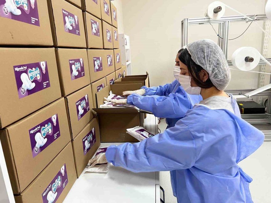 Kadınların ekonomik sorunlar nedeniyle yaşadıkları regl yoksulluğuna karşı hijyenik ped üretimine de başlanan Kadın Dayanışma Merkezi'nde, günlük 5 bin adet üretim kapasitesiyle üretilen hijyenik pedler, yine afet bölgesindeki ihtiyaç sahibi depremzede kadınlara gönderilmeye başlandı.