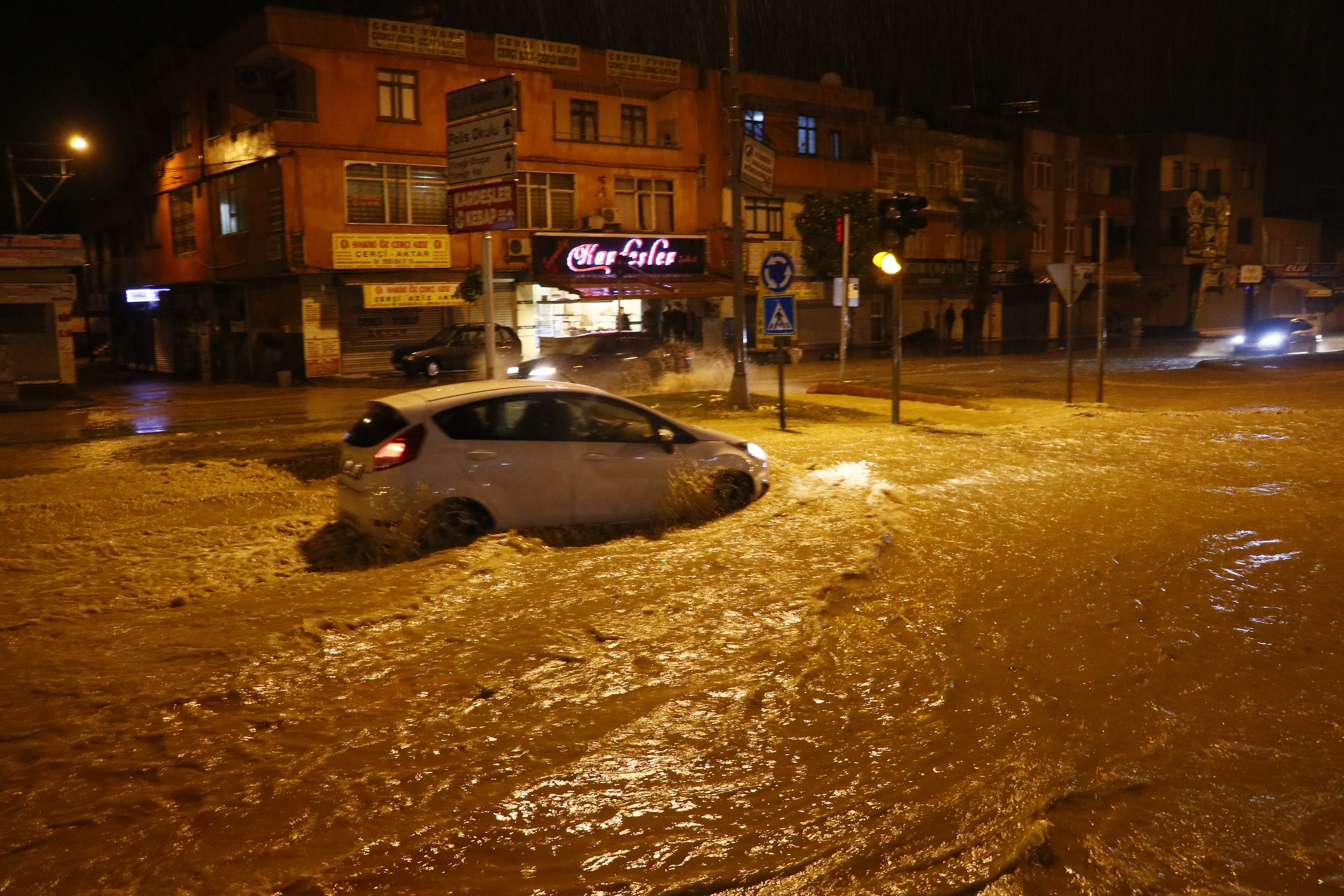 Akıntının hızla yayıldığı Kozan Caddesi ise adeta göle döndü. Sürücüler ilerlemekte güçlük çekerken bazı araçlar su içerisinde mahsur kaldı.