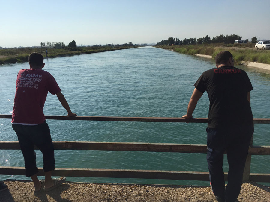 Ardından topun peşine olan çocuk sulama kanalına atlar.