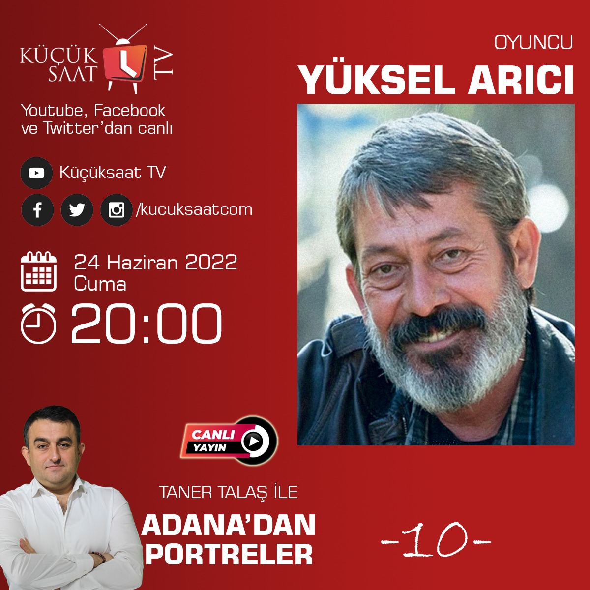 Taner Talaş, usta tiyatro ve sinema sanatçısı, oyuncu Yüksel Arıcı'yı "Adana'dan Portreler" programında ağırlayarak Arıcı'nın hayatını masaya yatıracak.
