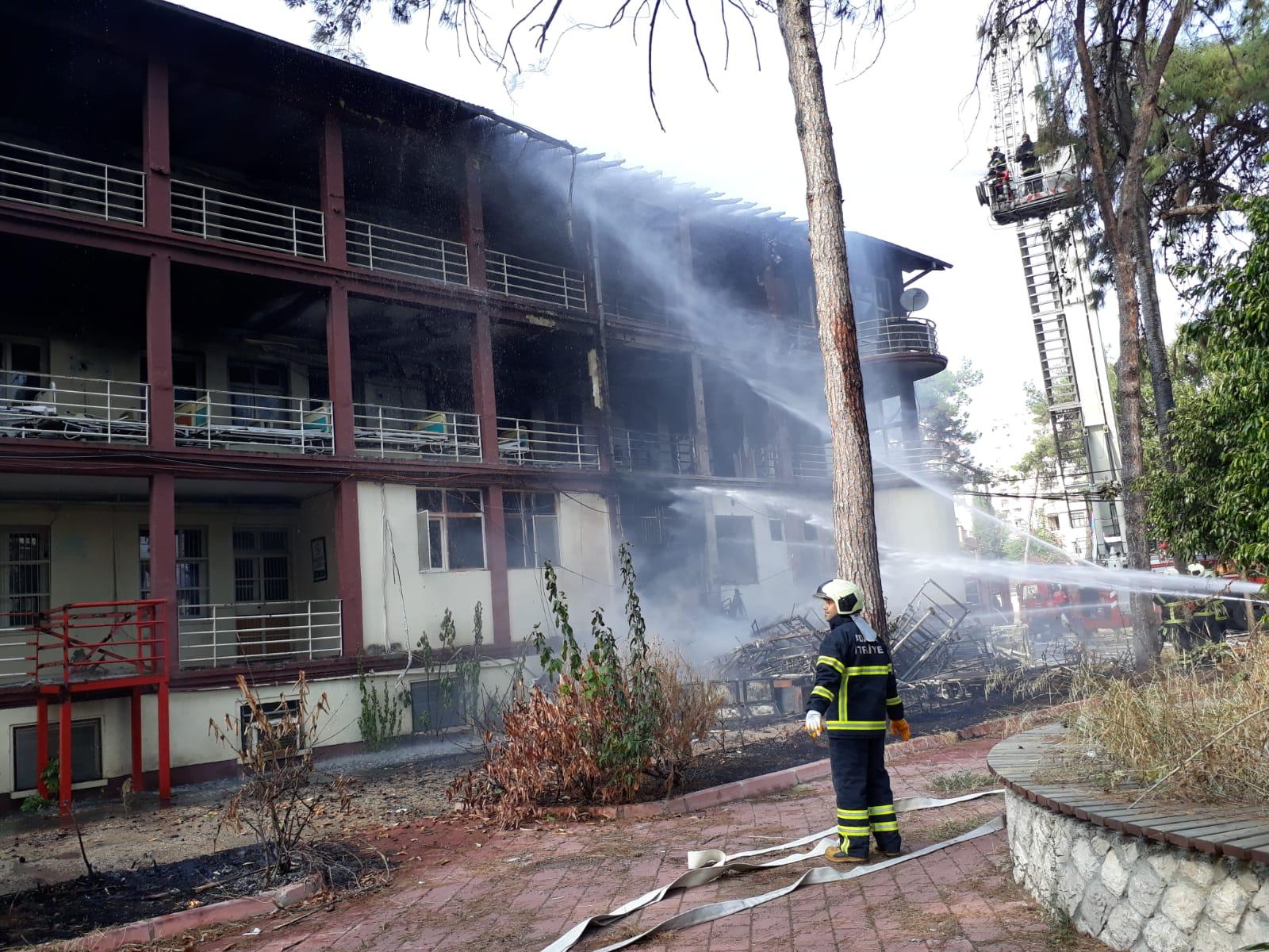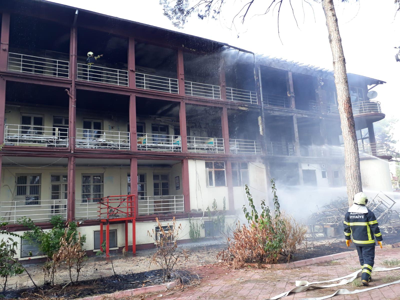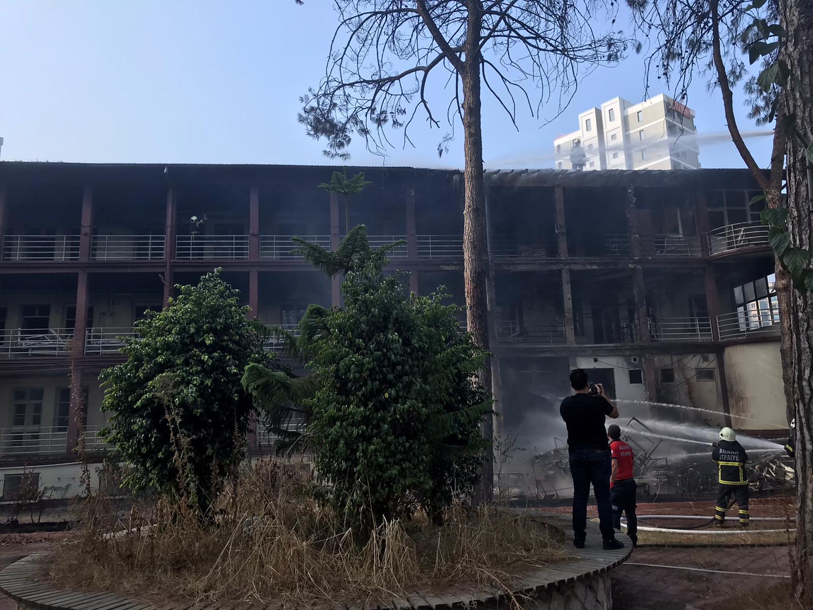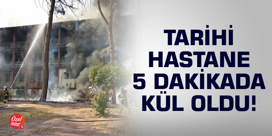 Adana'da göğüs hastalıkları hastanesinde çıkan yangında bina, 5 dakika içerisinde kül oldu.