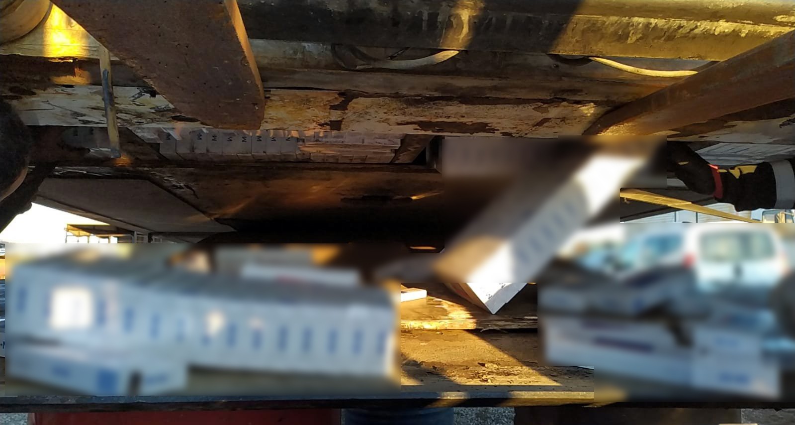 Adana'da polisin durduğu tırın altındaki kızaklı zuladan piyasa değeri 429 bin lira olan 28 bin 550 paket kaçak sigara çıktı.