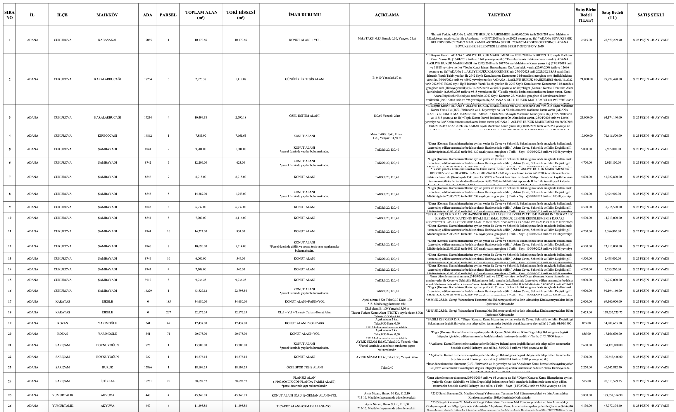 TOKİ Adana'nın 5 ilçesinde 26 arsayı satışa çıkardı. İşte detaylar;