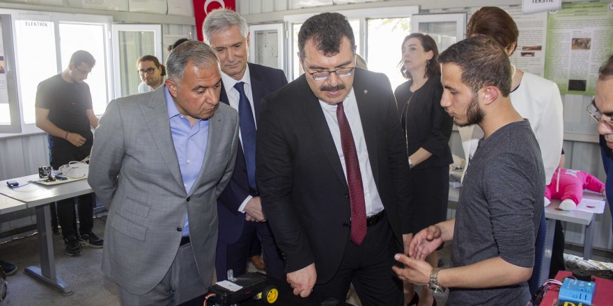 Prof. Dr. Mandal, söyleşinin ardından ÇÜ Teknik Bilimler Meslek Yüksekokulu’na geçerek, (AOSB) Başkanlığı ile Çukurova Üniversitesi AOSB Teknik Bilimler Meslek Yüksekokulu işbirliğinde gelişen dünya konjektörüne ayak uyduran, hayal kuran ve hayallerini gerçek hayata yararlı projeler halinde yansıtabilen bir nesil yetişmesine katkı sunmak amacıyla gerçekleştirdikleri “Sanayiye Uygulanabilir Öğrenci Projeleri Yarışmasına katılan projeleri inceleyip, proje sahipleri ile tanışarak, sohbet etti.