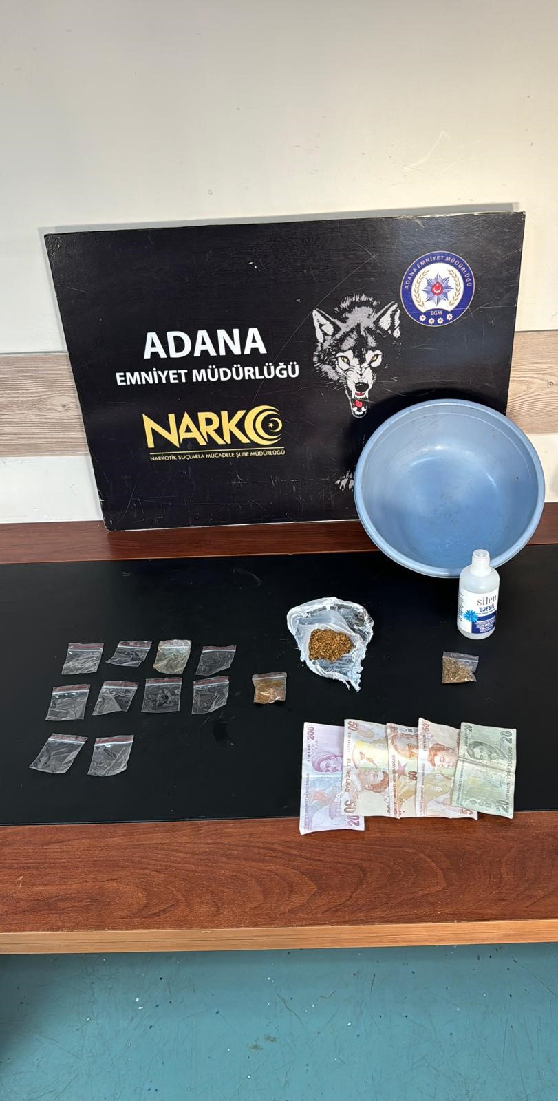 Adana Emniyet Müdürlüğü Narkotik Suçlarla Mücadele Şube Müdürlüğü ekipleri, Uğur Y.'in uyuşturucu ticareti yaptığını belirledi. Bunun üzerine ekipler söz konusu şüphelinin Seyhan ilçesine bağlı Fevzipaşa Mahallesi'nde ikametine operasyon düzenlendi. Düzenlenen operasyonla şüpheli yakalanırken evinde yapılan aramada 14.21 gram bonzai ile uyuşturucu madde paketlemesinde kullanılan 9 adet şeffaf kilitli poşet ele geçirildi.