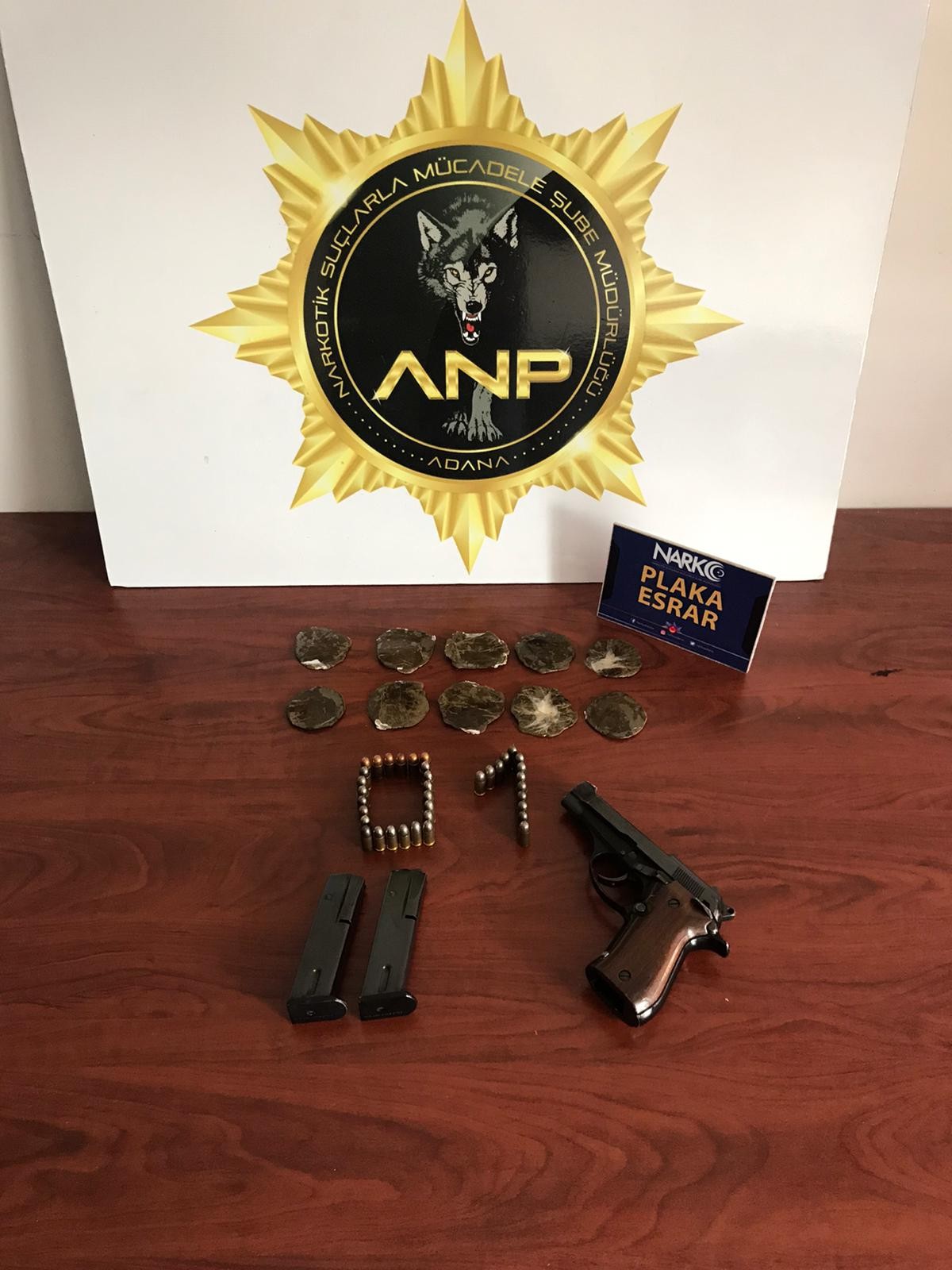 Adana Emniyet Müdürlüğü Narkotik Suçlarla Mücadele Şube Müdürlüğü ekipleri, uyuşturucu satıcılarına yönelik operasyon düzenledi. İki araç ve bir evde yapılan aramada 2 kilo 650 gram sentetik uyuşturucu, 54,93 gram esrar, 0,41 gram metamfetamin, 55 uyuşturucu hap ve bir adet ruhsatsız tabanca ele geçirildi.