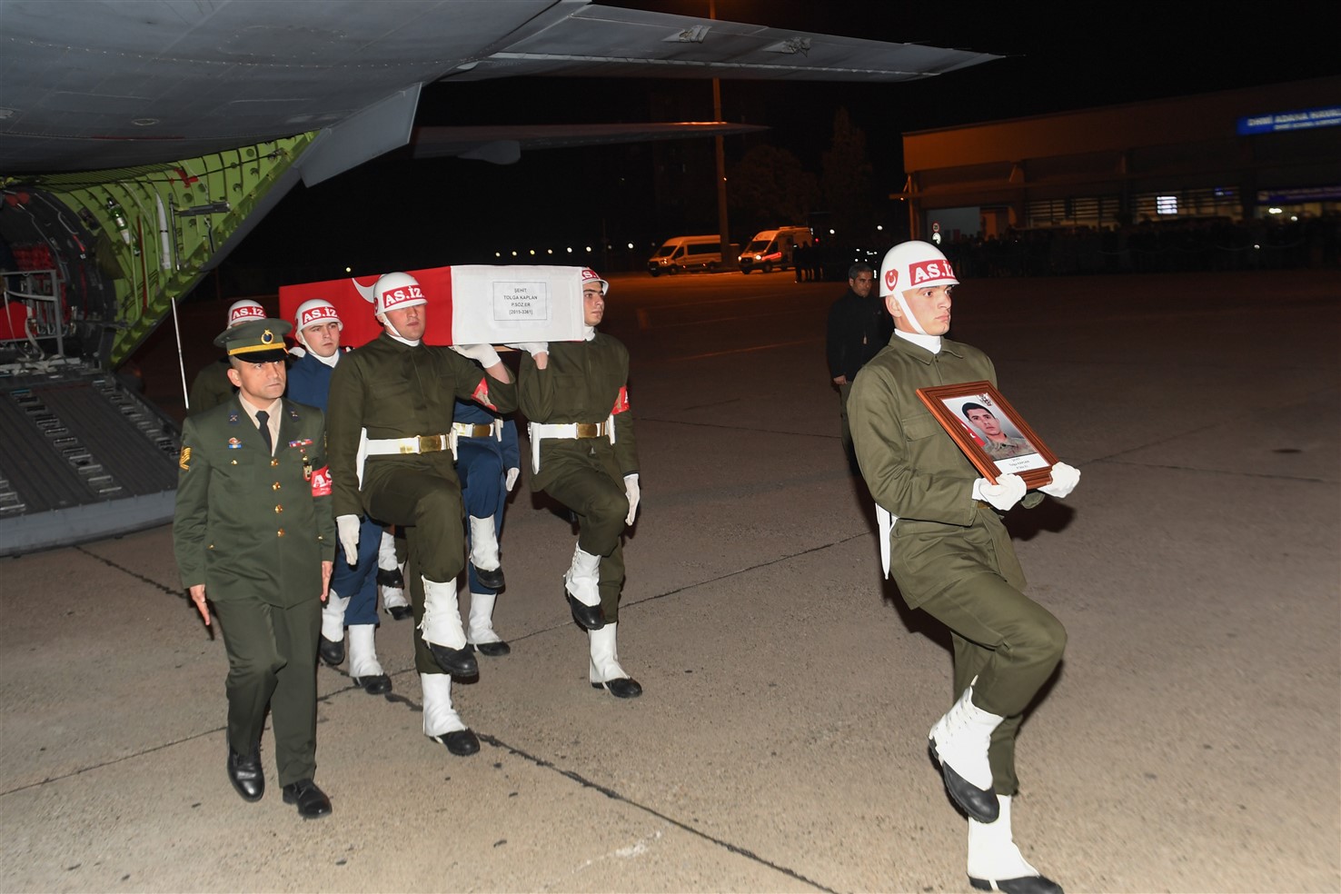 Vali Demirtaş ile protokol üyeleri tarafından karşılanan Şehit Sözleşmeli Piyade Er Tolga Kaplan’ın naaşı, karşılama töreni ardından toprağa verilmek üzere memleketi Mersin’e uğurlandı.
