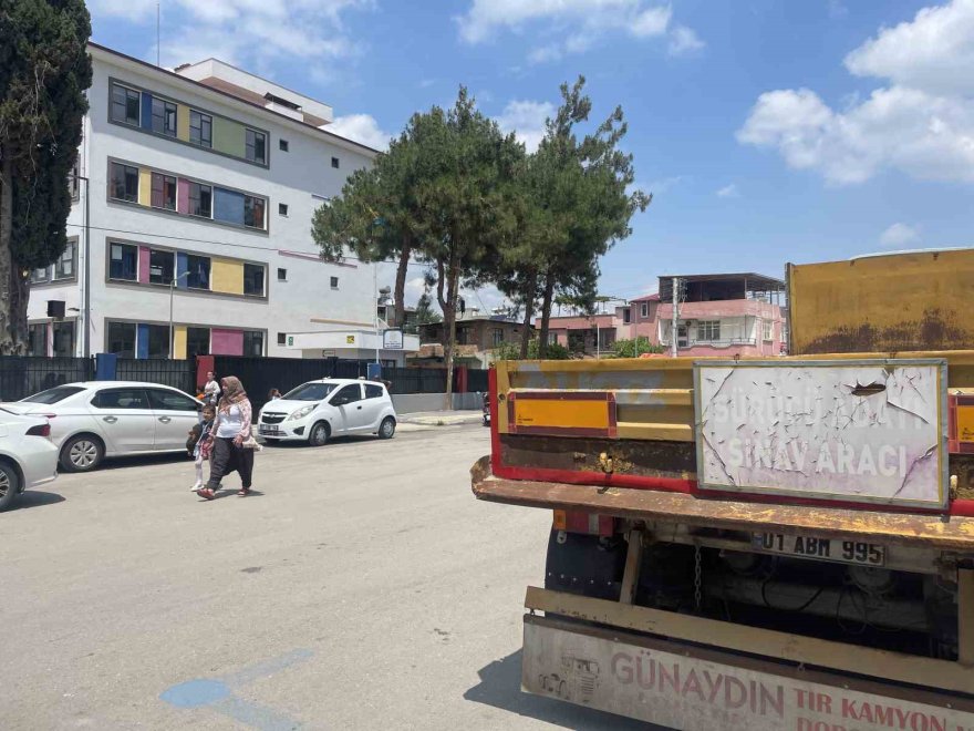 Adana'da ilkokul önünde verilen tır sürücülüğü eğitimine veli ve öğrenciler tepki gösterdi.