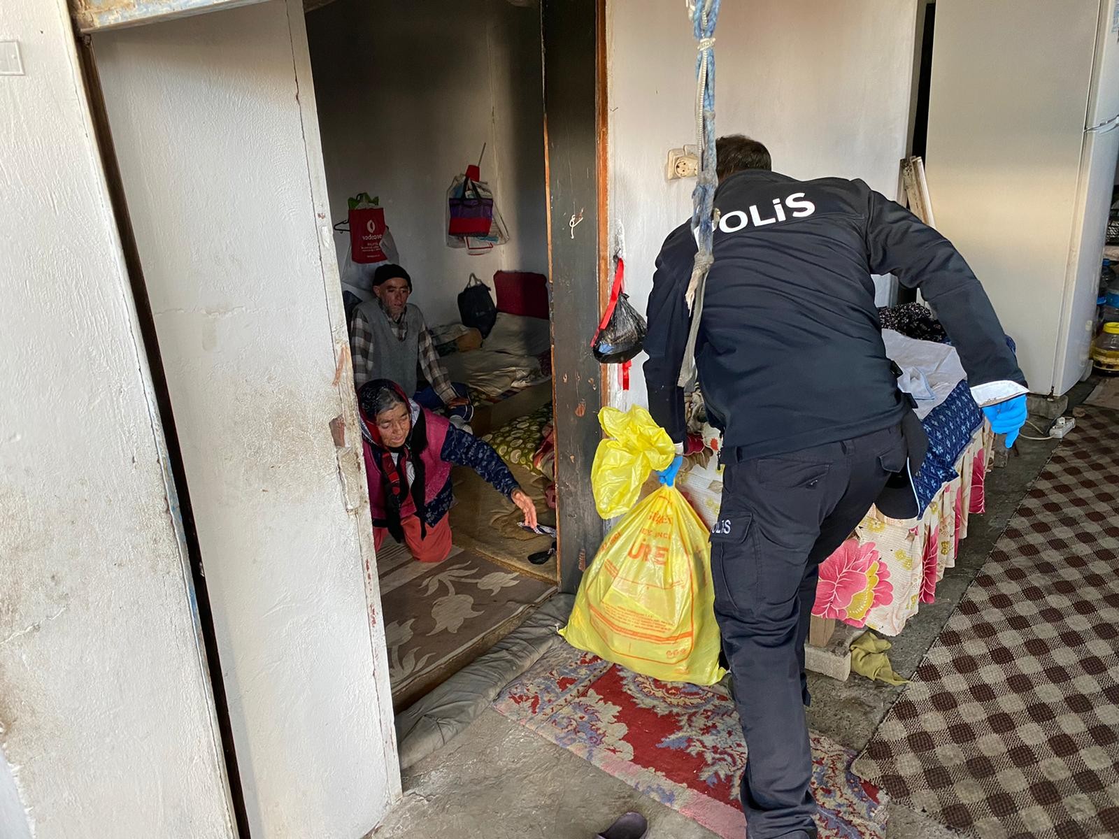 Polis ekmek, yağ, pirinç gibi temel gıda paketleri yaparak bu yaşlı vatandaşlara dağıttı.