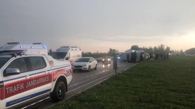 Edinilen bilgiye göre kaza Tırmıl mevkiinde meydana geldi. İddiaya göre, saat 18.00 sularında Adana Kozan arası yolcu taşıyan H.A. yönetimindeki 01 EMA 25 plakalı minibüs şiddetli yağmur nedeniyle kayganlaşan yolda devrildi. Kazada araçta yolcu konumunda bulunan Arife D. (40) , Reyhan M. (25), Nurşen M. (23), Mehtap Y. (41) ve 1 yaşındaki bebek hafif yaralı olarak olarak Kozan Devlet Hastanesine kaldırıldı.