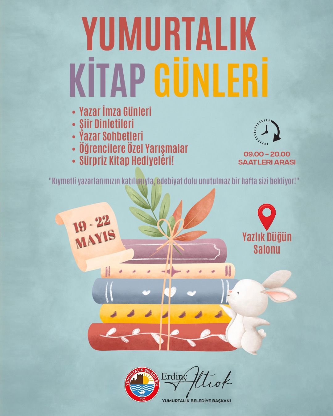Yumurtalık Kitap Günleri'nin 19 Mayıs Pazartesi günü başlayıp 22 Mayıs Perşembe günü akşamına dek süreceğini belirten Başkan Altıok, Yumurtalık Yazlık Düğün Salonu'nda gerçekleşecek etkinlik kapsamında "Yazar İmza Günleri", "Şiir Dinletileri", "Yazar Sohbetleri", "Öğrencilere Özel Yarışmalar", "Sürpriz Kitap Hediyeleri" düzenleneceğini belirtti.