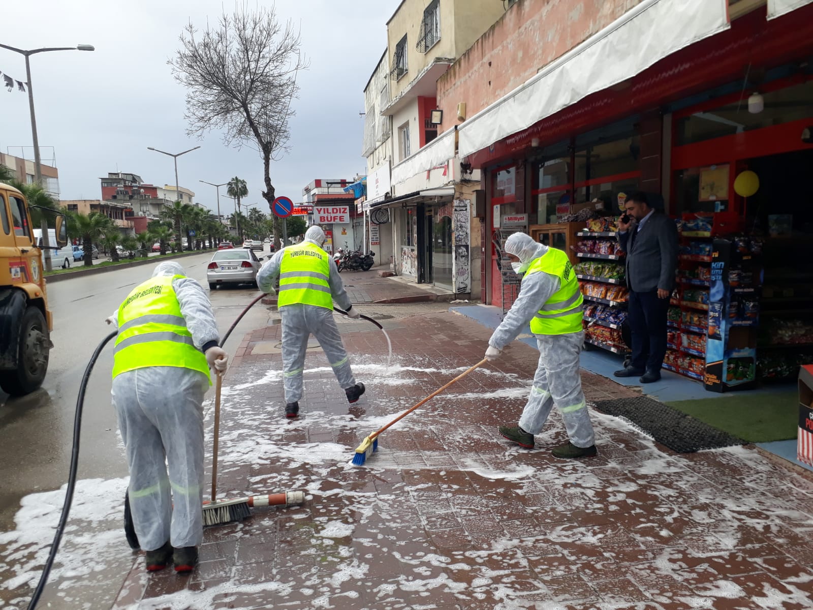 Yüreğir Belediyesi temizlik ekipleri ilçe sınırlarında bulunan kaldırımlarda dezenfekte çalışmalarına başladı.