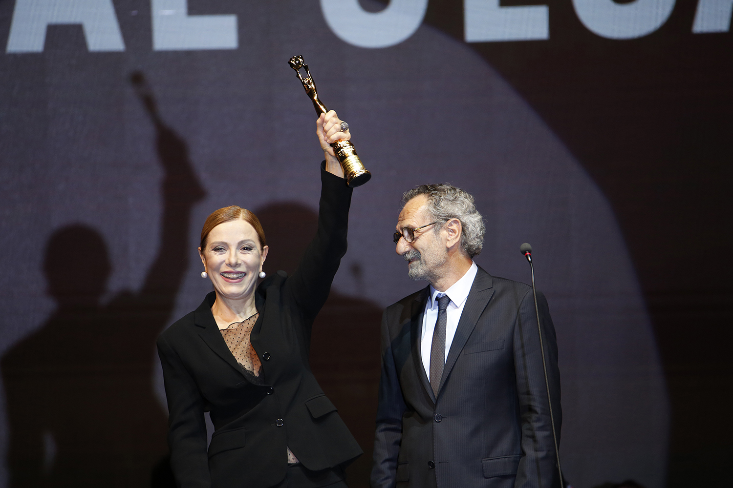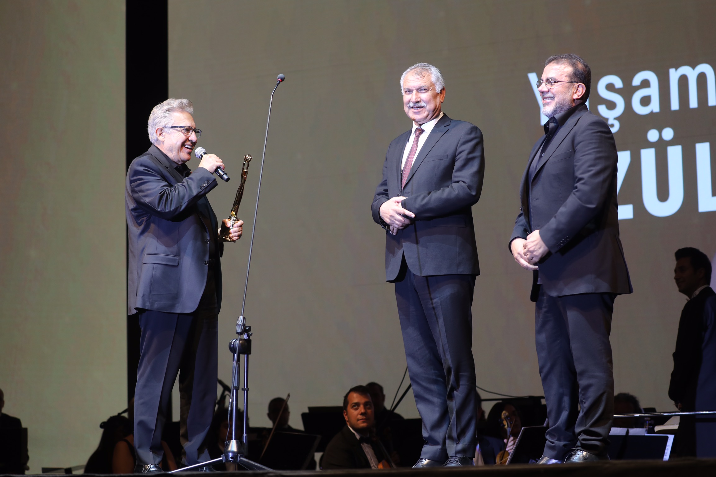 Daha sonra Zülfü Livaneli’ye Altın Koza Yaşam Boyu Onur Ödülü’nü, Adana Büyükşehir Belediye Başkanı Zeydan Karalar ve Festival Yürütme Kurulu Üyesi Nebil Özgentürk takdim etti.